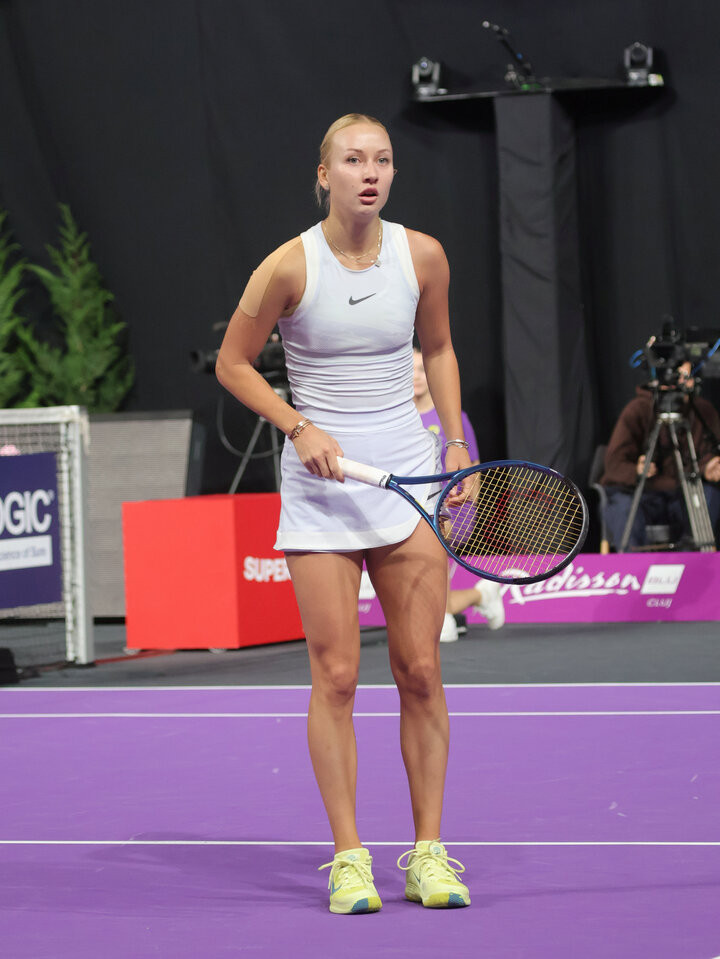 Descriere: Anastasia Potapova in meciul de tenis dintre Anastasia Potapova si Lucia Bronzetti (Italia), finala turneului Transilvania Open 2025 WTA 250, desfasurat la BT Arena Cluj din Cluj-Napoca, duminica 9 februarie 2025. © FOTO: Marian Valentin Burlacu/SPORT PICTURES