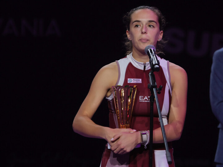 Descriere: Lucia Bronzetti si trofeul pentru locul 2 dupa meciul de tenis dintre Anastasia Potapova si Lucia Bronzetti (Italia), finala turneului Transilvania Open 2025 WTA 250, desfasurat la BT Arena Cluj din Cluj-Napoca, duminica 9 februarie 2025. © FOTO: Marian Valentin Burlacu/SPORT PICTURES