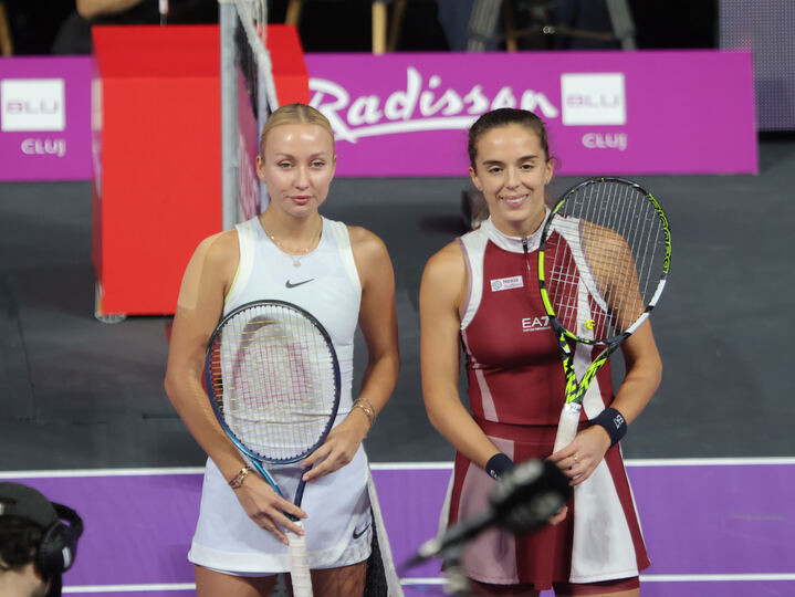 Descriere: Anastasia Potapova si Lucia Bronzetti la startul meciului de tenis dintre Anastasia Potapova si Lucia Bronzetti (Italia), finala turneului Transilvania Open 2025 WTA 250, desfasurat la BT Arena Cluj din Cluj-Napoca, duminica 9 februarie 2025. © FOTO: Marian Valentin Burlacu/SPORT PICTURES