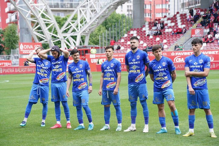 Descriere: Fotbalistii buzoieni la startul meciului de fotbal dintre UTA Arad si Gloria Buzau, contand pentru Superliga Superbet Play-Out, desfasurat pe Arena Francisc Neuman din Arad, sambata 17 mai 2025. © FOTO: Alexandra Fechete/SPORT PICTURES