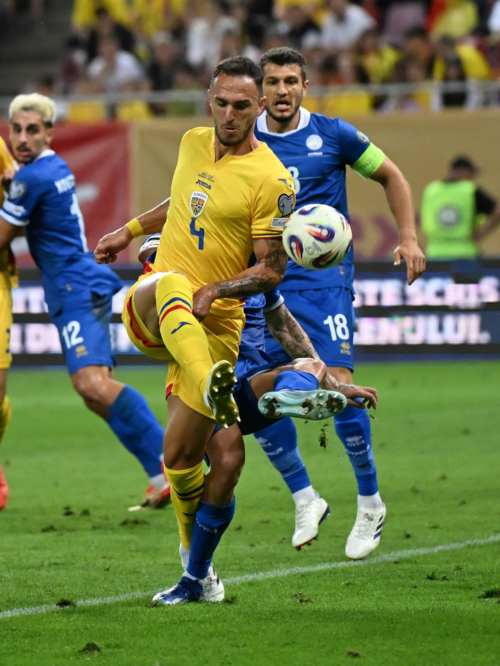 Descriere: Virgil Ghita si Giorgos Malekkidis in meciul de fotbal dintre Romania si Cipru, din cadrul Preliminariilor Campionatului Mondial 2026, desfasurat pe Arena Nationala din Bucuresti, marti 10 iunie 2025. © FOTO:Razvan Pasarica/SPORT PICTURES