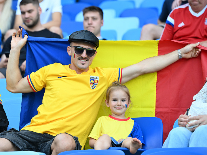 Descriere: Suporterii romani isi incurajeaza favoritii la meciul de fotbal dintre Spania U21 si Romania U21, din cadrul UEFA EURO U21 din Slovacia, desfasurat pe Stadionul National de fotbal din Bratislava, sambata 14 iunie 2025. © FOTO:Razvan Pasarica/SPORT PICTURES