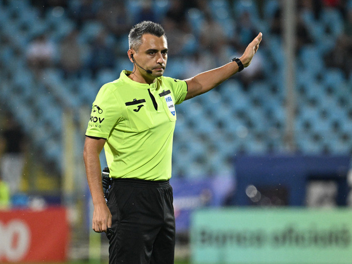 Descriere: Arbitrul central Horatiu Mircea Fesnic reacționează in meciul dintre Otelul Galati si Universitatea Craiova, contand pentru Superliga Superbet, desfasurat pe Stadionul Otelul din Galati, sambata 20 septembrie 2025. © FOTO:Razvan Pasarica/SPORT PICTURES