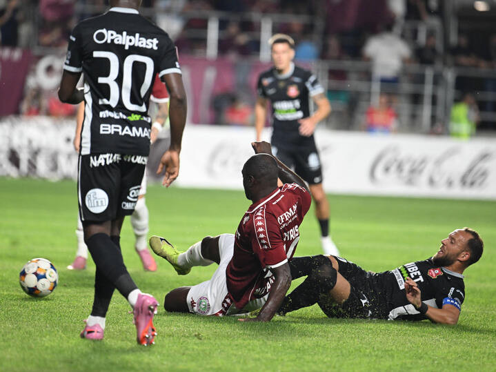 Descriere: Christopher Braun si Cristian Daniel Negut in meciul de fotbal dintre Rapid Bucuresti si FC Hermannstadt, din cadrul Superligii Superbet, desfasurat pe Superbet Arena-Giulesti din Bucuresti, duminica 21 septembrie 2025. © FOTO:Razvan Pasarica/SPORT PICTURES