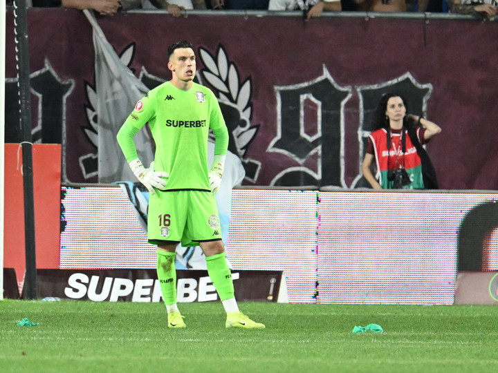 Descriere: Marian Mihai Aioani reacționează dupa un gol primit in meciul de fotbal dintre Rapid Bucuresti si FC Hermannstadt, din cadrul Superligii Superbet, desfasurat pe Superbet Arena-Giulesti din Bucuresti, duminica 21 septembrie 2025. © FOTO:Razvan Pasarica/SPORT PICTURES