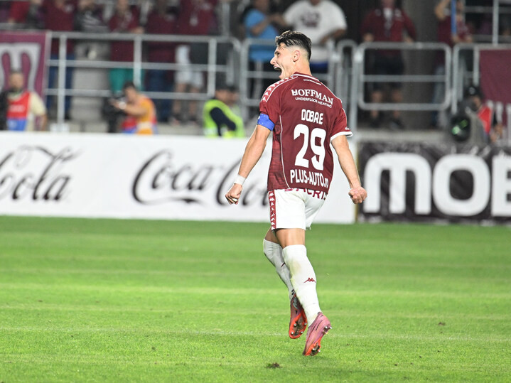 Descriere: Mihai Alexandru Dobre se bucură dupa un gol marcat in meciul de fotbal dintre Rapid Bucuresti si FC Hermannstadt, din cadrul Superligii Superbet, desfasurat pe Superbet Arena-Giulesti din Bucuresti, duminica 21 septembrie 2025. © FOTO:Razvan Pasarica/SPORT PICTURES