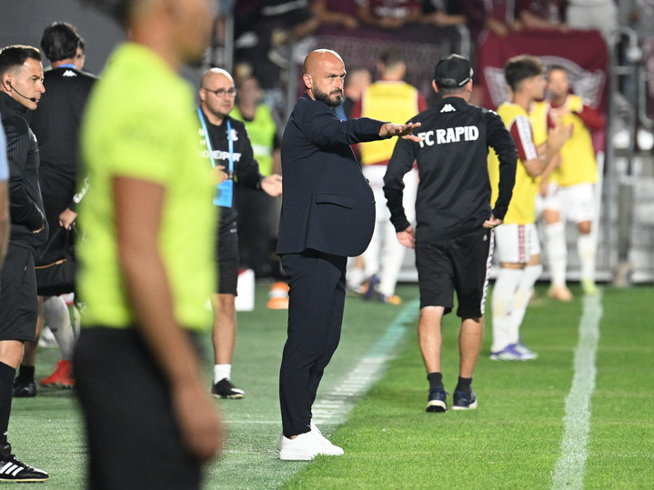 Descriere: Ionut Cosmin Voicu reacționează in meciul de fotbal dintre Rapid Bucuresti si FC Hermannstadt, din cadrul Superligii Superbet, desfasurat pe Superbet Arena-Giulesti din Bucuresti, duminica 21 septembrie 2025. © FOTO:Razvan Pasarica/SPORT PICTURES