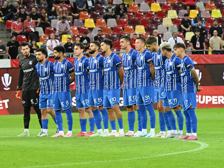 Descriere: Fotbalistii constanteni Alexandru Buzbuchi, Narek Grigoryan, Ionuț Daniel Vână, Eduard Gabriel Radaslavescu, Bogdan Ionut Tiru, Gabriel Cristian Iancu, Ionuț Justinian Larie, Mihai Alexandru Isfan, Victor Robert Dican, Cristian George Ganea si Razvan Andrei Tanasa la startul meciului de fotbal dintre Dinamo Bucuresti si Farul Constanta, din cadrul Superligii Superbet, desfasurat pe Arena Nationala din Bucuresti, luni 22 septembrie 2025. © FOTO:Razvan Pasarica/SPORT PICTURES