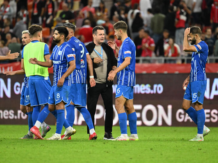 Descriere: Ianis Alin Zicu isi felicita jucatorii Cristian George Ganea, Ionuț Daniel Vână, Victor Robert Dican si Bogdan Ionut Tiru dupa meciul de fotbal dintre Dinamo Bucuresti si Farul Constanta, din cadrul Superligii Superbet, desfasurat pe Arena Nationala din Bucuresti, luni 22 septembrie 2025. © FOTO:Razvan Pasarica/SPORT PICTURES