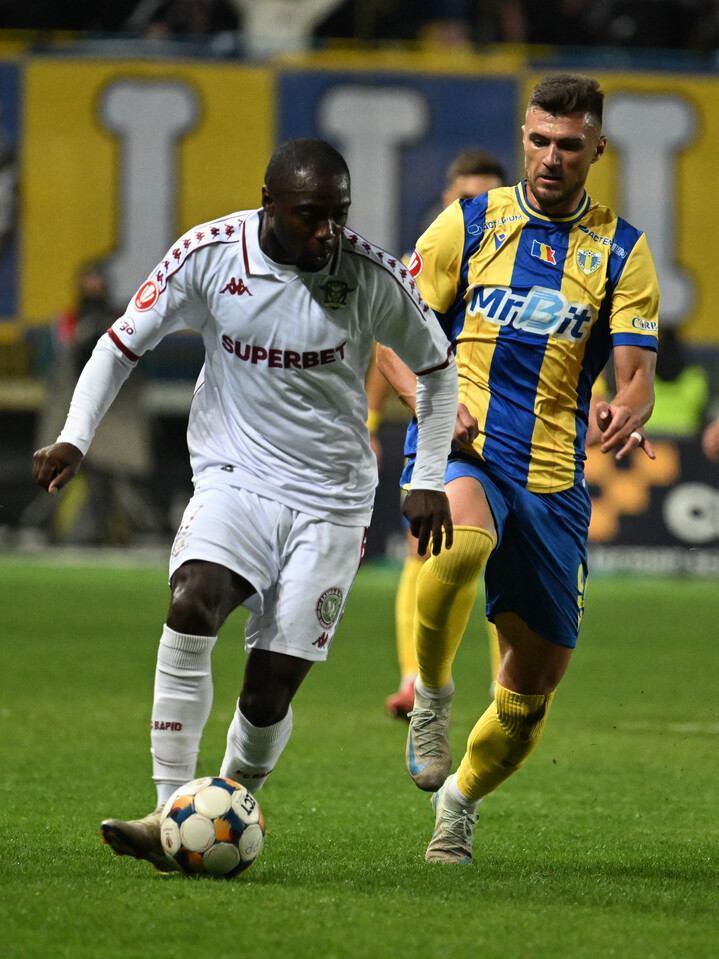 Descriere: Christopher Braun si Adi Marian Chica Rosa in meciul dintre Petrolul Ploiesti si Rapid Bucuresti, contand pentru Superliga Superbet, desfasurat pe Stadionul Ilie Oana din Ploiesti, sambata 27 septembrie 2025. © FOTO:Razvan Pasarica/SPORT PICTURES