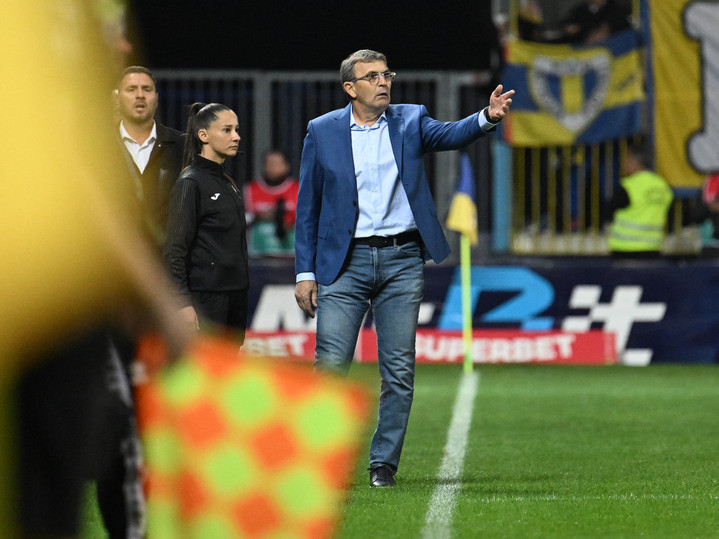 Descriere: Eugen Neagoe reacționează alături de arbitrul de rezerva Iuliana Elena Demetrescu in meciul dintre Petrolul Ploiesti si Rapid Bucuresti, contand pentru Superliga Superbet, desfasurat pe Stadionul Ilie Oana din Ploiesti, sambata 27 septembrie 2025. © FOTO:Razvan Pasarica/SPORT PICTURES