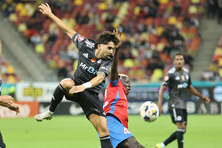 Descriere: Pedro Nuno Fernandes Ferreira si Baba Alhassan in meciul dintre FCSB si Otelul Galati, contand pentru Superliga Superbet, desfasurat pe Arena Nationala din Bucuresti, duminica 28 septembrie 2025. © FOTO:Gheorghe Fluster/SPORT PICTURES