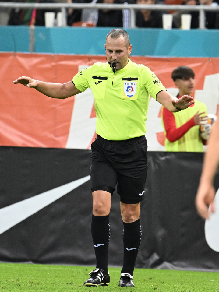Descriere: Arbitrul central Ionut Coza reacționează in meciul dintre FCSB si Otelul Galati, contand pentru Superliga Superbet, desfasurat pe Arena Nationala din Bucuresti, duminica 28 septembrie 2025. © FOTO:Razvan Pasarica/SPORT PICTURES
