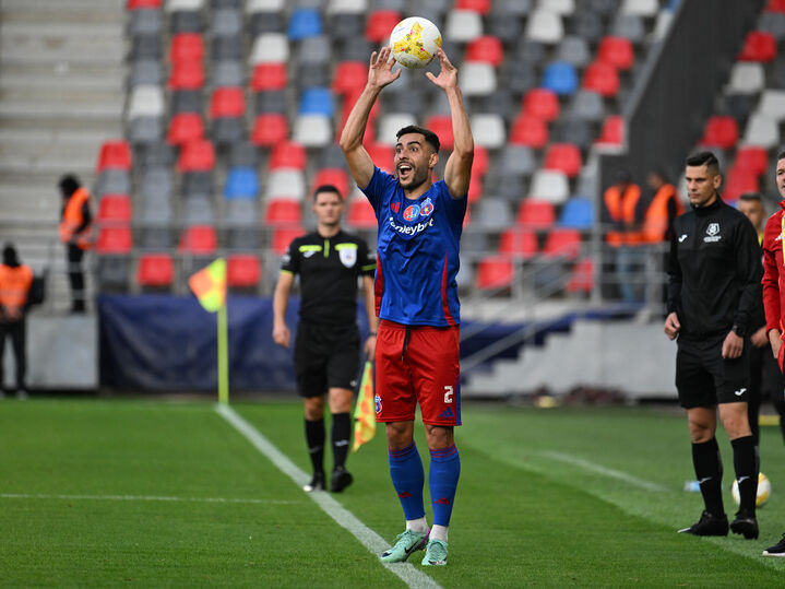 Descriere: Gabriel Ionut Nedelea bate un out in meciul de fotbal dintre Steaua Bucuresti si Sepsi OSK Sfantu Gheorghe, contand pentru Liga a-2-a Casa Pariurilor, desfasurat pe Stadionul Steaua-Ghencea din Bucuresti, marti 30 septembrie 2025. © FOTO:Razvan Pasarica/SPORT PICTURES
