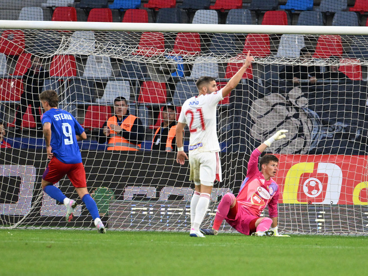 Descriere: Ruben Lopez Huesca marcheaza un gol in poarta lui George Bogdan Ungureanu sub privirile lui Alin Dobrosavlevici in meciul de fotbal dintre Steaua Bucuresti si Sepsi OSK Sfantu Gheorghe, contand pentru Liga a-2-a Casa Pariurilor, desfasurat pe Stadionul Steaua-Ghencea din Bucuresti, marti 30 septembrie 2025. © FOTO:Razvan Pasarica/SPORT PICTURES