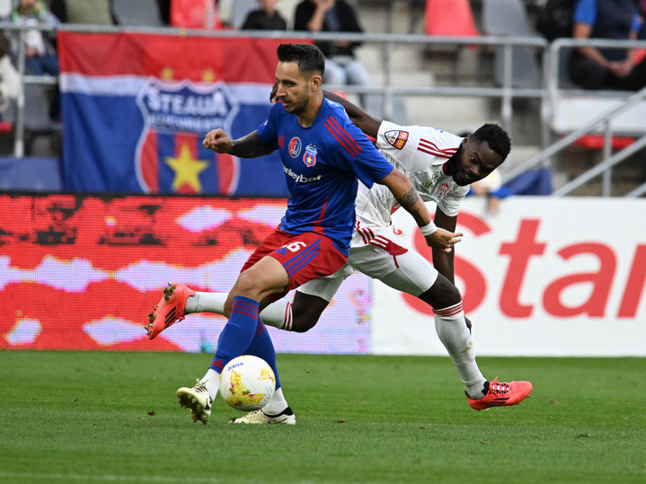 Descriere: Mihai Andrei Adascalitei si Dimitri Joseph Oberlin in meciul de fotbal dintre Steaua Bucuresti si Sepsi OSK Sfantu Gheorghe, contand pentru Liga a-2-a Casa Pariurilor, desfasurat pe Stadionul Steaua-Ghencea din Bucuresti, marti 30 septembrie 2025. © FOTO:Razvan Pasarica/SPORT PICTURES