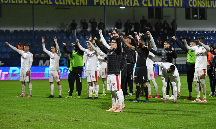 Descriere: Fotbalistii dinamovisti Alberto Soro Alvarez, Devis Rogers Epassy Mboka, Catalin Ionut Cirjan, Kennedy Kofi Boateng si Raul Marian Oprut saluta galeria dupa meciul dintre Unirea Slobozia si Dinamo Bucuresti, contand pentru Superliga Superbet, desfasurat pe Clinceni Arena din Clinceni, vineri 3 octombrie 2025. © FOTO:Razvan Pasarica/SPORT PICTURES