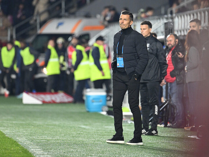 Descriere: Constantin Galca reacționează in meciul de fotbal dintre Rapid Bucuresti si Farul Constanta, din cadrul Superligii Superbet, desfasurat pe Superbet Arena-Giulesti din Bucuresti, sambata 4 octombrie 2025. © FOTO:Razvan Pasarica/SPORT PICTURES