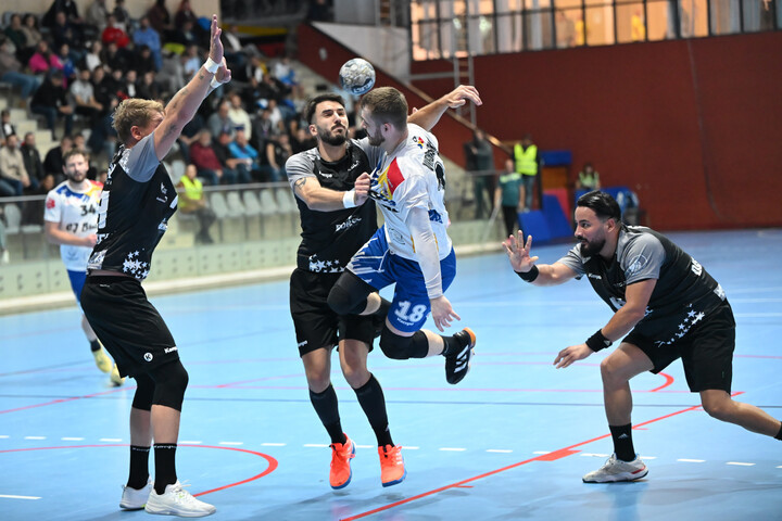 Descriere: Markus Hans Stegefelt, Janja Vojvodic, Gabrielius Zanas Virbauskas si Zamfir-Zavenica Dumitrana in meciul de handbal masculin dintre CSM Bucuresti si HC Buzau, contand pentru Liga Zimbrilor, desfasurat in Sala Apollo din Bucuresti, luni 6 octombrie 2025. © FOTO:Razvan Pasarica/SPORT PICTURES