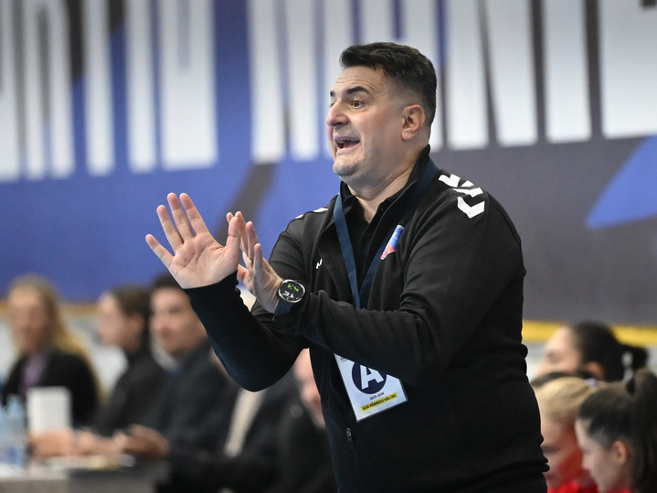 Descriere: Constantin Florentin Pera reactioneaza in meciul de handbal feminin dintre CSM Bucuresti si SCM Ramnicu Valcea, din cadrul Ligii Florilor, desfasurat in Sala Apollo din Bucuresti, joi 9 octombrie 2025. © FOTO:Razvan Pasarica/SPORT PICTURES