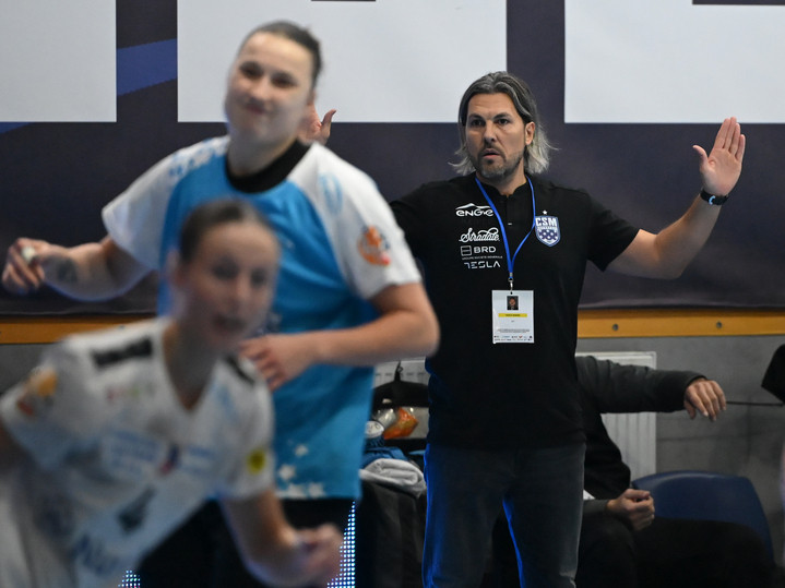 Descriere: Adrian Vasile reactioneaza in meciul de handbal feminin dintre CSM Bucuresti si SCM Ramnicu Valcea, din cadrul Ligii Florilor, desfasurat in Sala Apollo din Bucuresti, joi 9 octombrie 2025. © FOTO:Razvan Pasarica/SPORT PICTURES