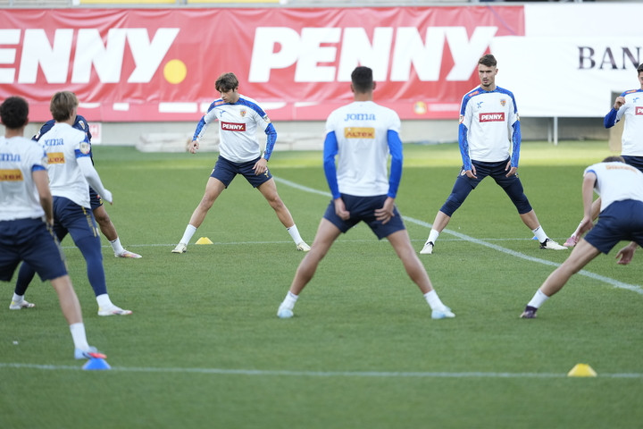 Descriere: Fotbalistii romani la antrenamentul oficial de dinaintea meciului amical impotriva Serbiei U21, desfasurat la Stadionul Francisc Neuman din Arad, joi 9 octombrie 2025. © FOTO:Alexandra Fechete/SPORT PICTURES