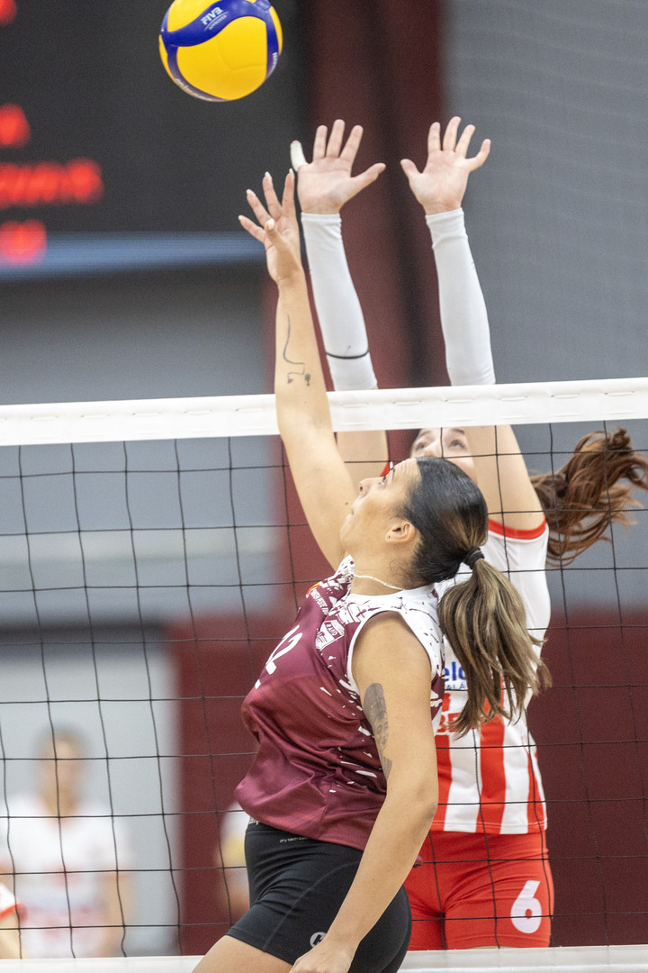 Descriere: Alexandra Alice Kapelovies si Mirta Velikonja Grbac in meciul de volei feminin dintre CS Rapid Bucuresti si CS Dinamo Bucuresti, contand pentru Divizia A1 Feminin, desfasurat în Sala Polivalenta Rapid din Bucuresti, sambata 18 octombrie2025. © FOTO:Mihai Neacsu/SPORT PICTURES