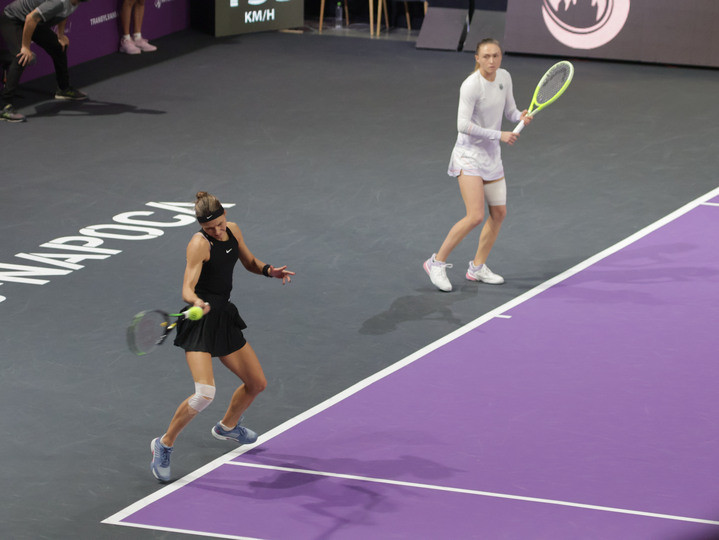 Descriere: Katarzyna Piter si Aliaksandra Sasnovich in meciul de tenis dintre Jaqueline Cristian/Angelica Moratelli (Romania/Italia) si Katarzyna Piter/Aliaksandra Sasnovich (Polonia/Belarus) din cadrul turneului Transilvania Open 2025 WTA 250, desfasurat la BT Arena Cluj din Cluj-Napoca, sambata 8 februarie 2025. © FOTO: Marian Valentin Burlacu/SPORT PICTURES