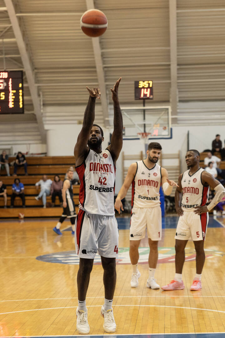 Descriere: Derrick Michael Marks in meciul de baschet dintre CS Dinamo Bucuresti și CSM Targu Jiu, din cadrul Ligii Nationale de Baschet Masculin GETICA 95, desfasurat la Arena de Baschet Bucuresti, duminica 28 septembrie 2025. © FOTO:Mihai Neacsu/SPORT PICTURES