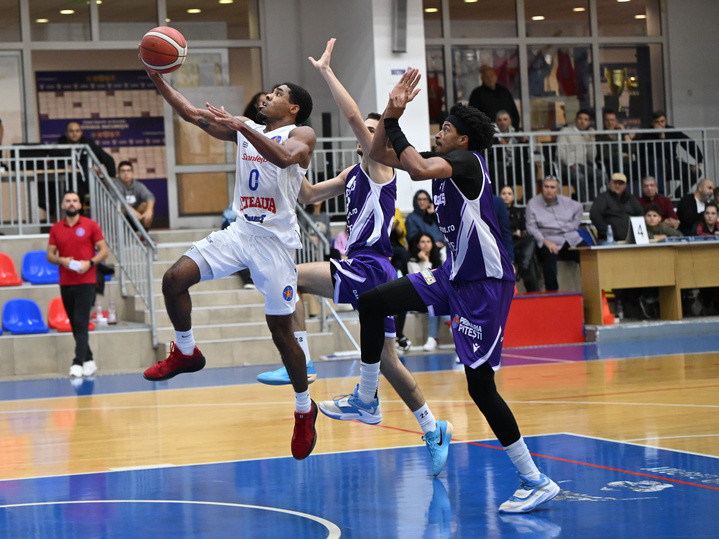 Descriere: Kenny Martel Mathews Dye si Teafale Marquise Lenard Jr in meciul de baschet masculin dintre Steaua Sharks Bucuresti si FC Arges Pitesti, din cadrul Ligii Nationale Getica 95, desfasurat in Sala Regimentului de garda Mihai Viteazul din Bucuresti, sambata 4 octombrie 2025. © FOTO:Razvan Pasarica/SPORT PICTURES