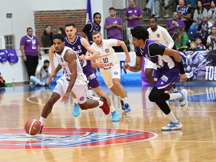 Descriere: Kenny Martel Mathews Dye, Matei Alexandru Dorneanu, George Alexandru Vlad si Teafale Marquise Lenard Jr in meciul de baschet masculin dintre Steaua Sharks Bucuresti si FC Arges Pitesti, din cadrul Ligii Nationale Getica 95, desfasurat in Sala Regimentului de garda Mihai Viteazul din Bucuresti, sambata 4 octombrie 2025. © FOTO:Razvan Pasarica/SPORT PICTURES
