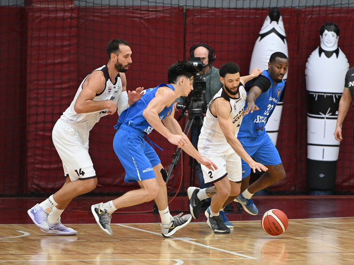 Descriere: Nikola Jevtovic, Albert Mark Stan, Roman Aleen Penn si Demilade Ebose Adeyemi Adelekun in meciul de baschet masculin dintre Rapid Bucuresti si Steaua Sharks Bucuresti, din cadrul Ligii Nationale Getica 95, desfasurat in Sala Rapid din Bucuresti, miercuri 8 octombrie 2025. © FOTO:Razvan Pasarica/SPORT PICTURES