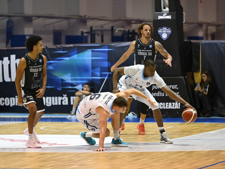 Descriere: Colin Clinton Cooper, Laszlo Polyak, Mouhamed Barro si Lewis Clinton Djonkam in meciul de baschet masculin dintre CSO Voluntari si CSM Targu Jiu, contand pentru Liga Nationala Getica 95, desfasurat in Sala Gabriela Szabo din Voluntari, miercuri 8 octombrie 2025. © FOTO:Razvan Pasarica/SPORT PICTURES