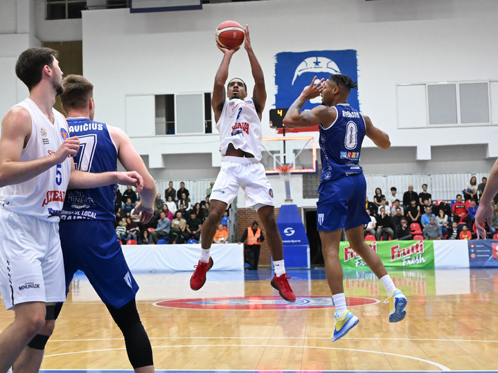 Descriere: Kenny Martel Mathews Dye si Kendall Tyrek Robinson in meciul de baschet masculin dintre Steaua Sharks Bucuresti si SCMU Craiova, din cadrul Ligii Nationale Getica 95, desfasurat in Sala Regimentului de garda Mihai Viteazul din Bucuresti, sambata 11 octombrie 2025. © FOTO:Razvan Pasarica/SPORT PICTURES