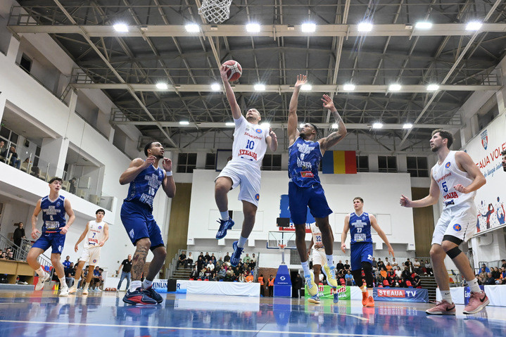 Descriere: Vlad Razvan Nistor, Paul Adrian Popescu, Ishmael Elijah Leggett, George Alexandru Vlad, Kendall Tyrek Robinson, Tomas Zdanavicius si Vitalie Balan in meciul de baschet masculin dintre Steaua Sharks Bucuresti si SCMU Craiova, din cadrul Ligii Nationale Getica 95, desfasurat in Sala Regimentului de garda Mihai Viteazul din Bucuresti, sambata 11 octombrie 2025. © FOTO:Razvan Pasarica/SPORT PICTURES