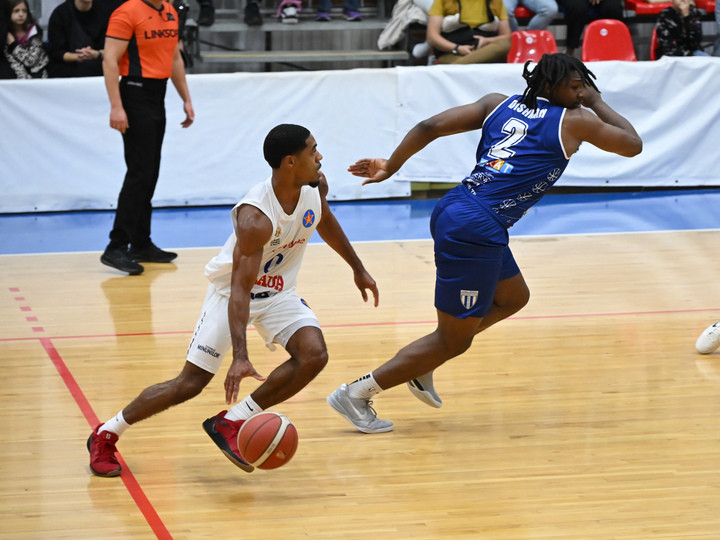 Descriere: Kenny Martel Mathews Dye si De Andre Ramon Dishman in meciul de baschet masculin dintre Steaua Sharks Bucuresti si SCMU Craiova, din cadrul Ligii Nationale Getica 95, desfasurat in Sala Regimentului de garda Mihai Viteazul din Bucuresti, sambata 11 octombrie 2025. © FOTO:Razvan Pasarica/SPORT PICTURES