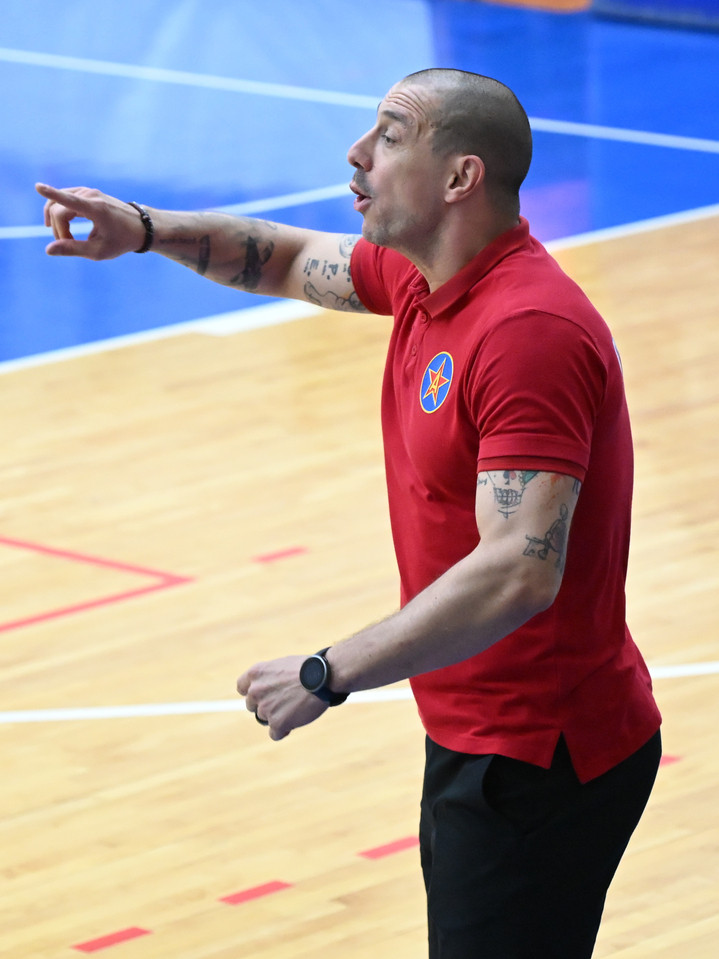 Descriere: Andrei Rares Mandache reacționează in meciul de baschet masculin dintre Steaua Sharks Bucuresti si SCMU Craiova, din cadrul Ligii Nationale Getica 95, desfasurat in Sala Regimentului de garda Mihai Viteazul din Bucuresti, sambata 11 octombrie 2025. © FOTO:Razvan Pasarica/SPORT PICTURES