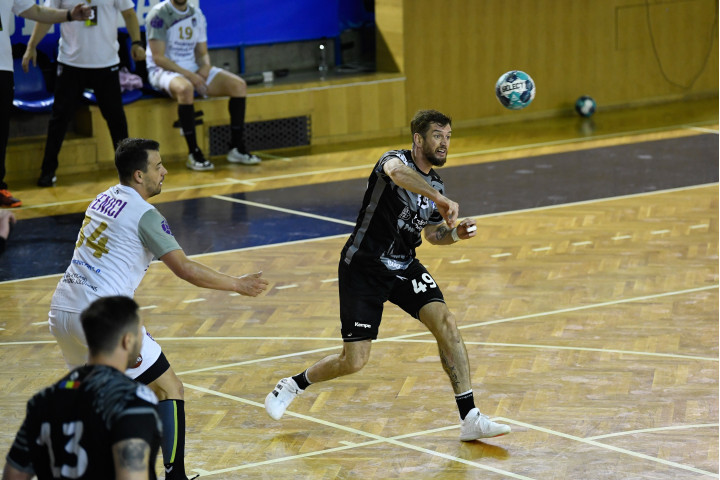 Descriere: Nantes Raul Campos si Cristian Stelian Fenici in meciul de handbal masculin dintre CSM Bucuresti si SCM Politehnica Timisoara, contand pentru Turneul Liga Zimbrilor, desfasurat fara spectatori in Sala Horia Demian din Cluj Napoca, marti 8 aprilie 2021. © FOTO:Flaviu Buboi/SPORT PICTURES