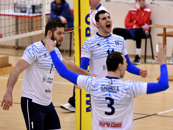Descriere: Gabriel Cherbeleata se bucura in meciul de volei masculin dintre Dinamo Bucuresti si CSM Bucuresti, din cadrul Diviziei A1, desfasurat in Sala Dinamo din Bucuresti, vineri 25 ianuarie 2019.