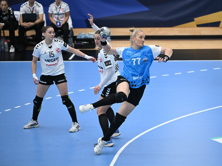 Descriere: Veronika Babara, Sara Senvald si Crina Elena Pintea in meciul de handbal feminin dintre CSM Bucuresti si HC Podravka Koprivnica, din cadrul Ligii Campionilor, desfasurat in Sala Dinamo din Bucuresti, duminica 5 octombrie 2025. © FOTO:Razvan Pasarica/SPORT PICTURES