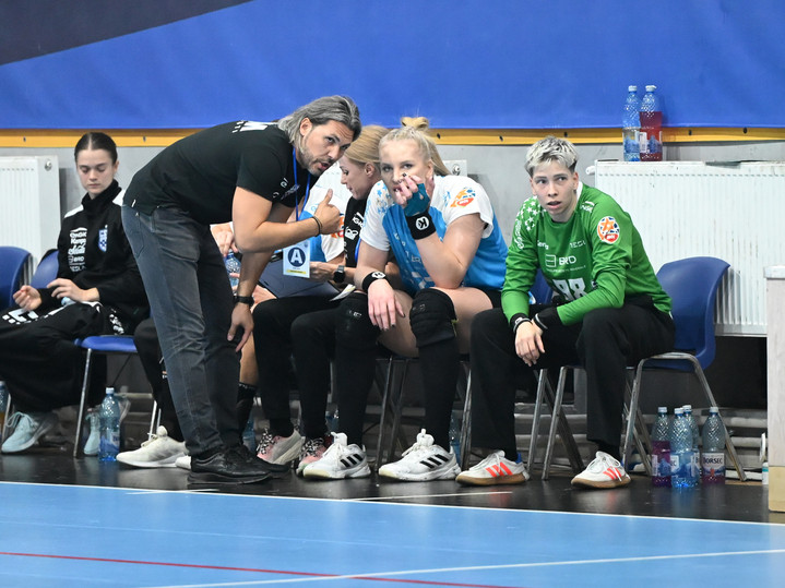 Descriere: Adrian Vasile discuta cu Crina Elena Pintea si Daciana Hosu pe banca bucuresteana in meciul de handbal feminin dintre CSM Bucuresti si SCM Universitatea Craiova, din cadrul Ligii Florilor, desfasurat in Sala Apollo din Bucuresti, duminica 12 octombrie 2025. © FOTO:Razvan Pasarica/SPORT PICTURES
