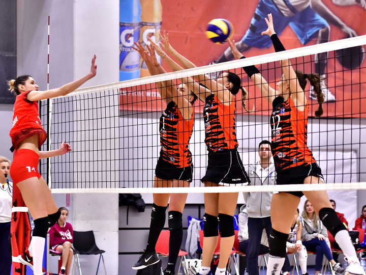 Descriere: Faza de joc in meciul de volei feminin dintre CSM Bucuresti si ACS Agroland Timisoara, contand pentru Cupa Romaniei, disputat in sala Elite Sports Performance din Bucuresti, miercuri 17 ianuarie 2018.