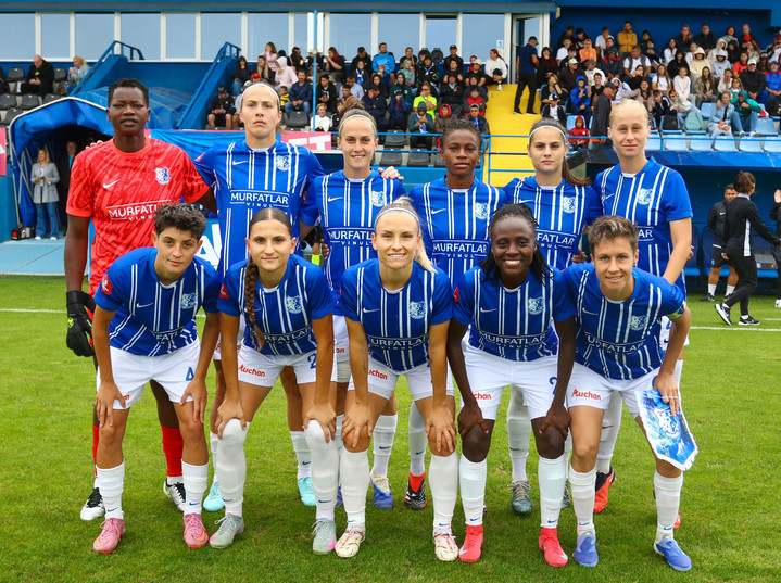 Descriere: Fotbalistele constantene la o fotografie de grup realizata inaintea meciului de fotbal feminin dintre Farul Constanta si HB Køge, contand pentru UEFA Europa Cup, desfasurat pe terenul central din cadrul Academiei Gheorghe Hagi din Ovidiu, miercuri 17 septembrie 2025. © FOTO: Sorin Danielciuc/SPORT PICTURES