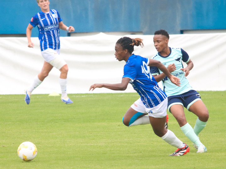 Descriere: Estelle Gnaly in meciul de fotbal feminin dintre Farul Constanta si HB Køge, contand pentru UEFA Europa Cup, desfasurat pe terenul central din cadrul Academiei Gheorghe Hagi din Ovidiu, miercuri 17 septembrie 2025. © FOTO: Sorin Danielciuc/SPORT PICTURES