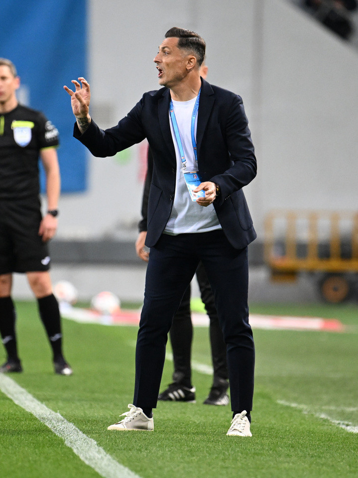 Descriere: Mirel Matei Radoi reacționează in meciul dintre Universitatea Craiova si CFR Cluj, contand pentru Play off-ul Superligii Superbet, desfasurat pe Stadionul Ion Oblemenco din Craiova, sambata 10 mai 2025. © FOTO:Razvan Pasarica/SPORT PICTURES
