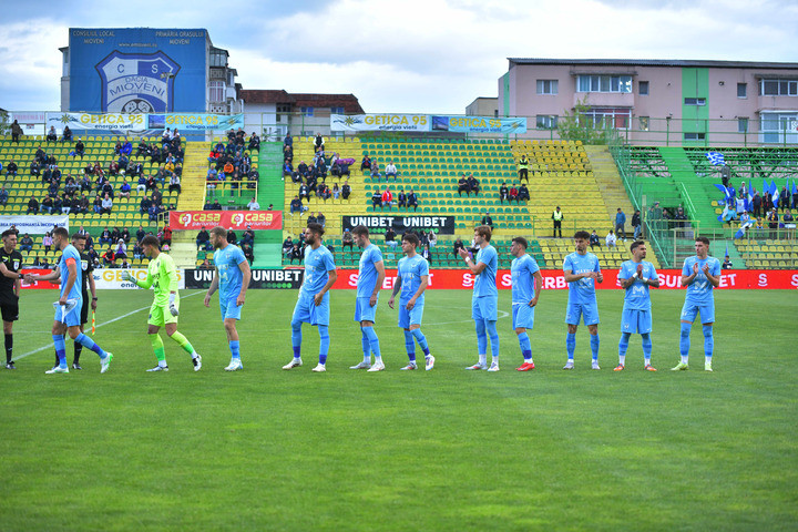 Descriere: Fotbalistii ilfoveni la startul meciului de fotbal dintre ACS Campionii Fotbal Club Argeș si FC Voluntari, contand pentru Liga 2 Casa Pariurilor Play-Off Promovare, desfasurat pe Stadionul Orasenesc din Mioveni, marti 13 mai 2025. © FOTO: Mihai Nitoiu/SPORT PICTURES