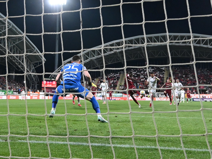 Descriere: Beni Jean Luc Nkololo marchează un gol în poarta lui Cătălin Vasile Cabuz de langa Ionuț Stoica in meciul de fotbal dintre CFR Cluj si FC Hermannstadt, finala Cupei Romaniei Betano, desfasurat pe Stadionul Francisc Neuman din Arad, miercuri 14 mai 2025. © FOTO:Razvan Pasarica/SPORT PICTURES