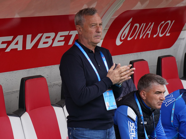 Descriere: Mircea Rednic la startul meciului de fotbal dintre UTA Arad si Gloria Buzau, contand pentru Superliga Superbet Play-Out, desfasurat pe Arena Francisc Neuman din Arad, sambata 17 mai 2025. © FOTO: Alexandra Fechete/SPORT PICTURES