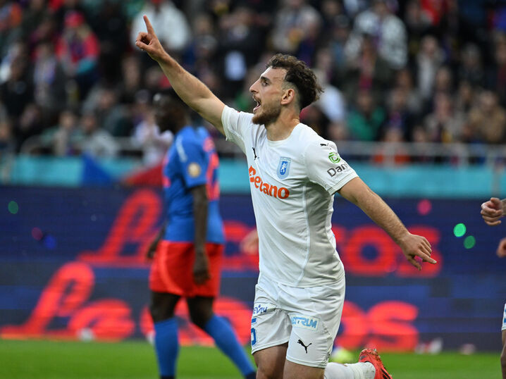 Descriere: Anzor Mekvabishvili se bucură dupa un gol anulat marcat in meciul de fotbal dintre FCSB si Universitatea Craiova, din cadrul Play off-ului Superligii Superbet, desfasurat pe Arena Nationala din Bucuresti, sambata 17 mai 2025. © FOTO:Razvan Pasarica/SPORT PICTURES