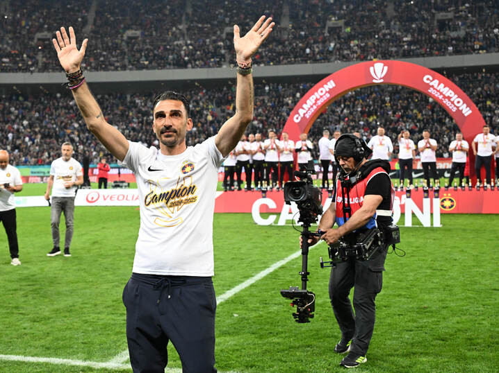 Descriere: Elias Charalambous celebreaza castigarea Superligii Superbet in urma meciului dintre FCSB si Universitatea Craiova, din cadrul Play off-ului competitiei, desfasurat pe Arena Nationala din Bucuresti, sambata 17 mai 2025. © FOTO:Razvan Pasarica/SPORT PICTURES